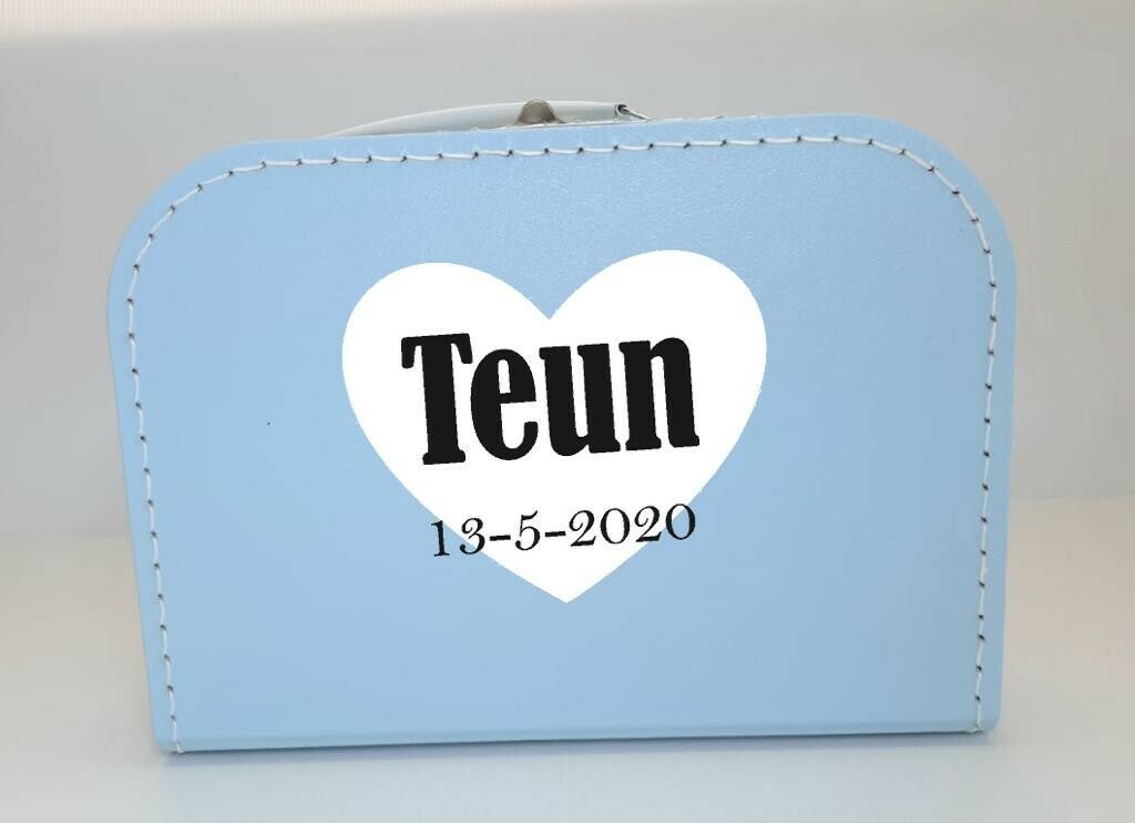 koffer bedrukt met hart naam en datum