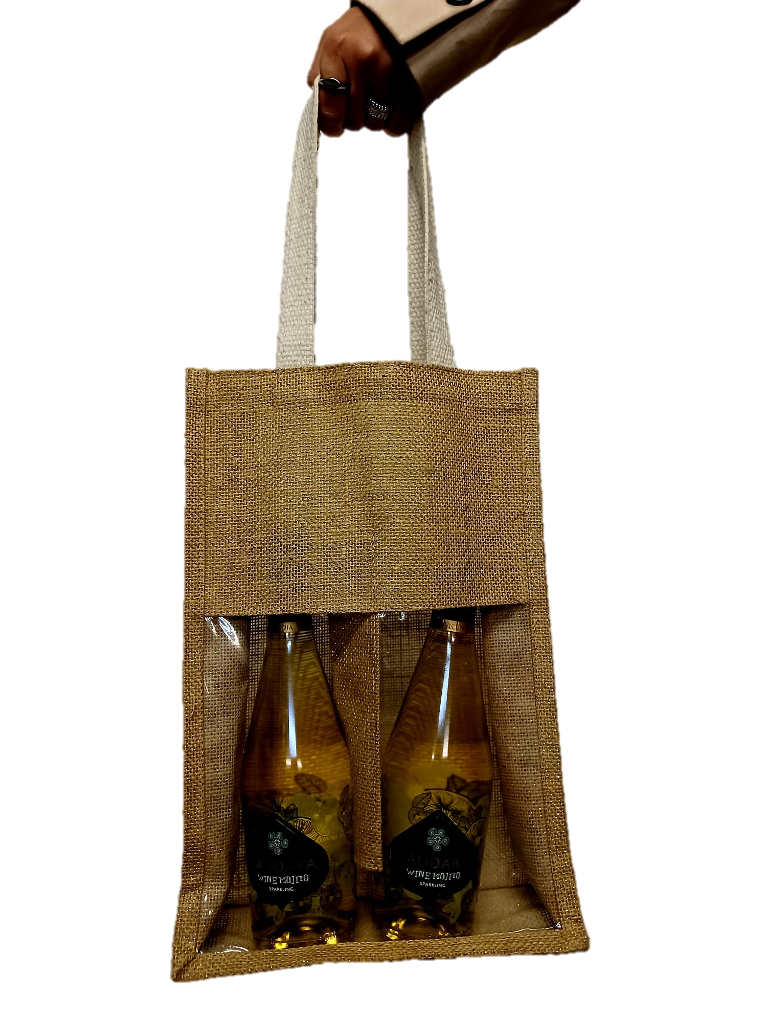 Bruine jute tas voor wijnfles - 2 flessen